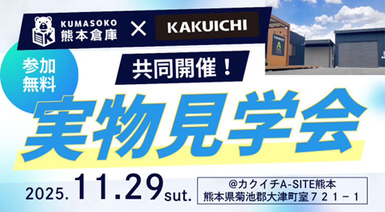 当社の倉庫・ガレージ専門建築事業「熊本倉庫(KUMASOKO)」では、高品質とコストパフォーマンスで人気のメーカー「カクイチ」様と共同で、最新の倉庫・ガレージを“見て・触れて・体感”できる【特別見学会】を開催致します。