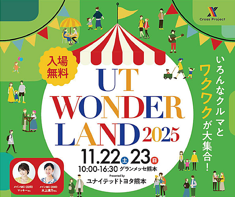 ユナイテッドトヨタ熊本主催の 「UTワンダーランド2025」 が、11月22日(土)~23日(日) の2日間、グランメッセ熊本 で開催されます!ステージイベント、SUV試乗会、グルメブースなど、家族みんなで楽しめるコンテンツが盛りだくさん♪